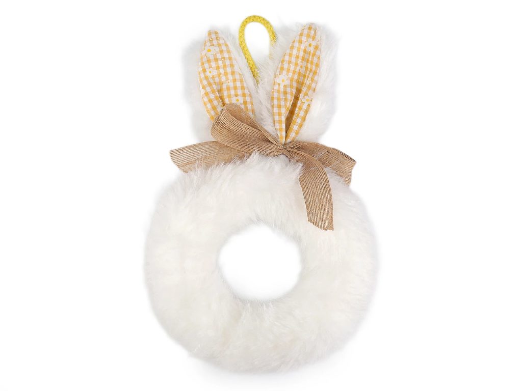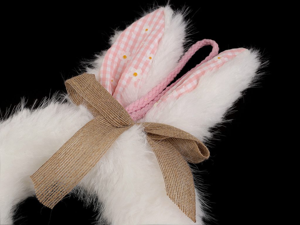 Velikonoční věnec v podobě zajíčka vnese hravost a kouzlo jarních svátků do každého interiéru. Má roztomilý vzhled, kožešinka na pohled i na dotek věrně imituje reálnou králičí srst.