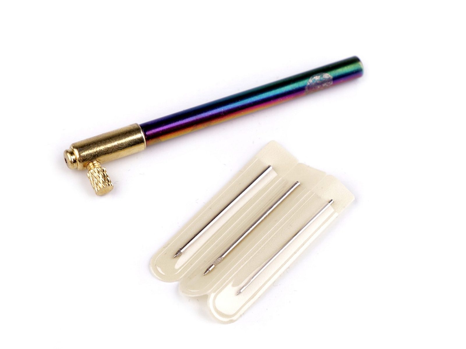 Obrázek produktu "Aari jehla - rukojeť a 3 jehly s háčky" může být ilustrační, aby vám poskytl lepší představu o produktu. Pokud si přejete potvrdit, že obrázek a popisek odpovídají skutečnému produktu, neváhejte nás kontaktovat na emailu: info@bexis.cz - odpovědi se dočkáte co nejdříve!