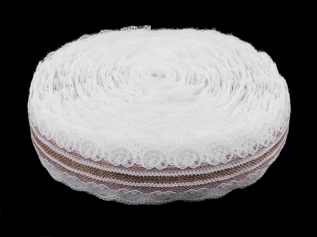 METRÁŽ Jutová stuha s krajkou šíře 55 mm