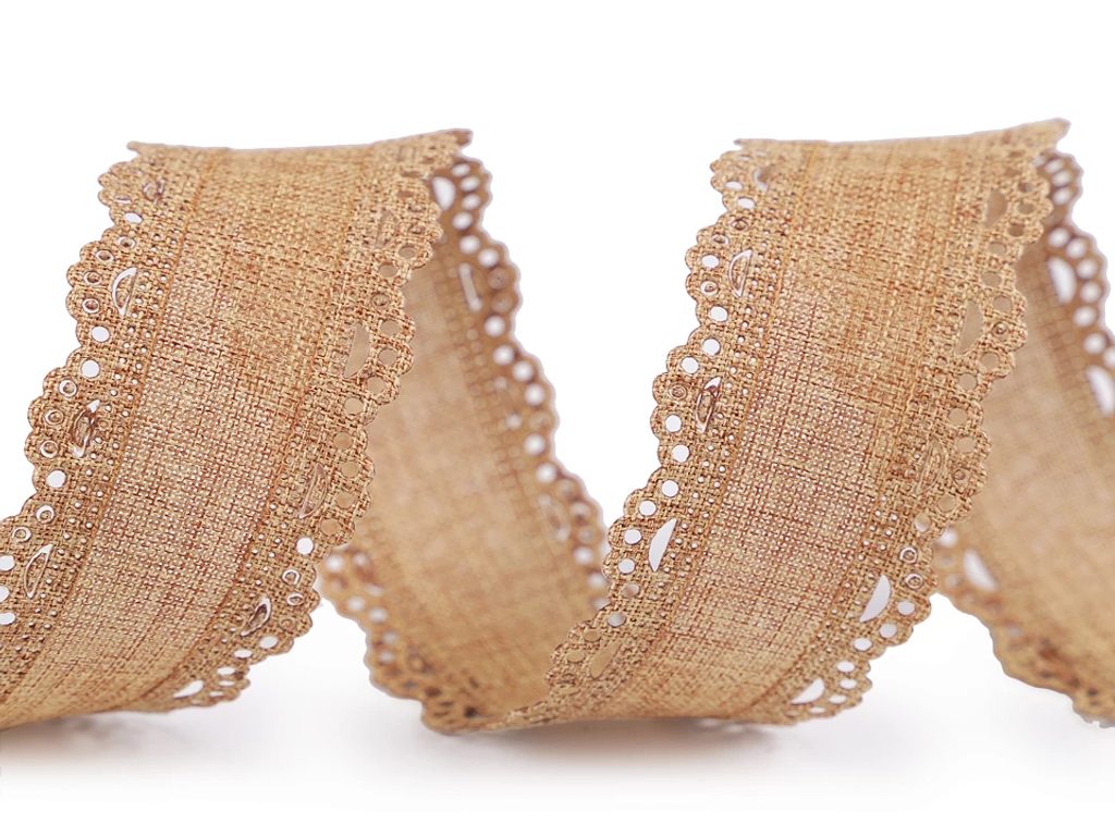 METRÁŽ Jutová stuha s krajkou šíře 25 mm