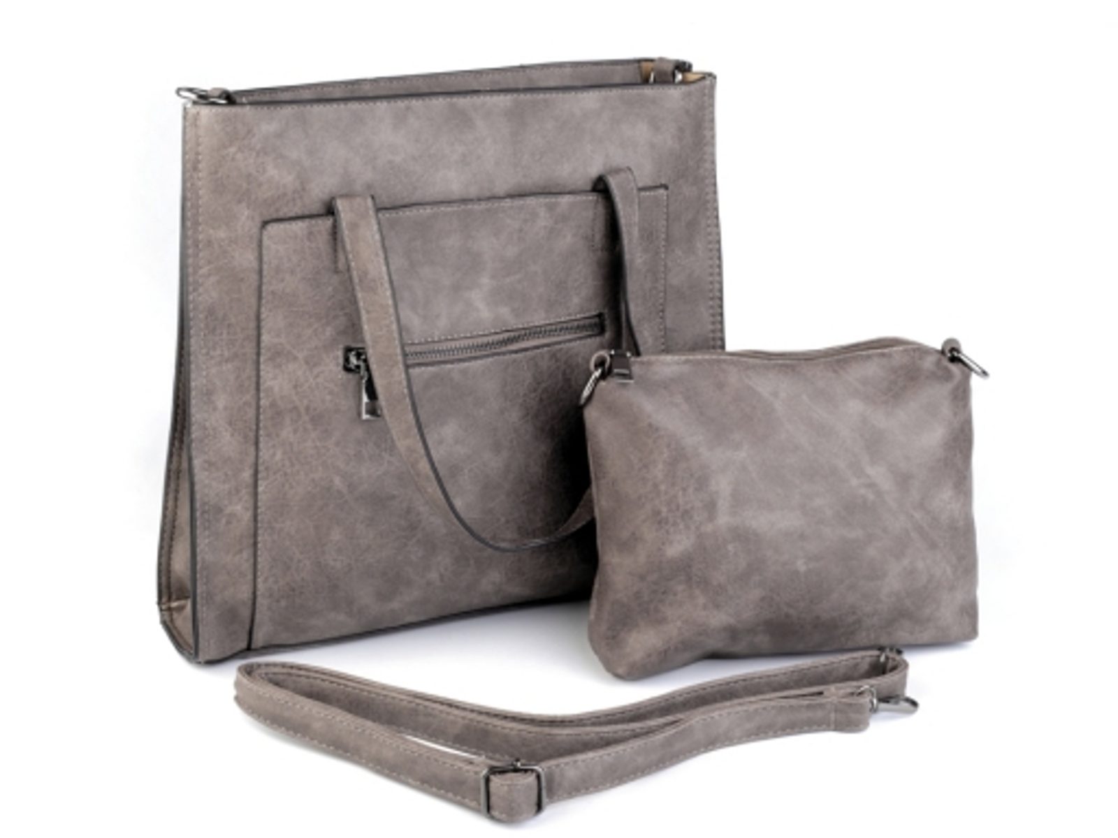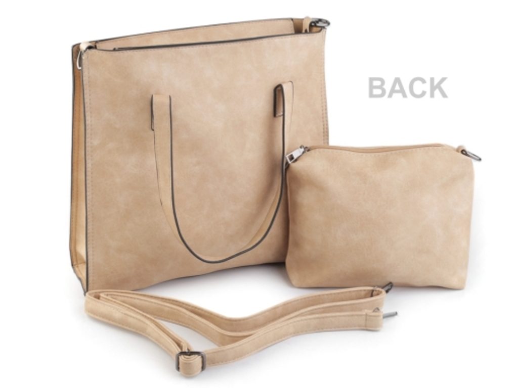 Elegantní kabelka z eko kůže vám bude dělat společníka do práce i na procházky. Zapíná se na zip. Na její boční straně najdete přihrádku a kapsu na zip. Uvnitř kabelky je menší taška (18 x 24 cm). Kabelka má u sebe nastavitelný popruh, jehož max. délka je 150 cm. Popruh můžete připnout na kabelku i na menší tašku. Ucha kabelky mají délku 49 cm.