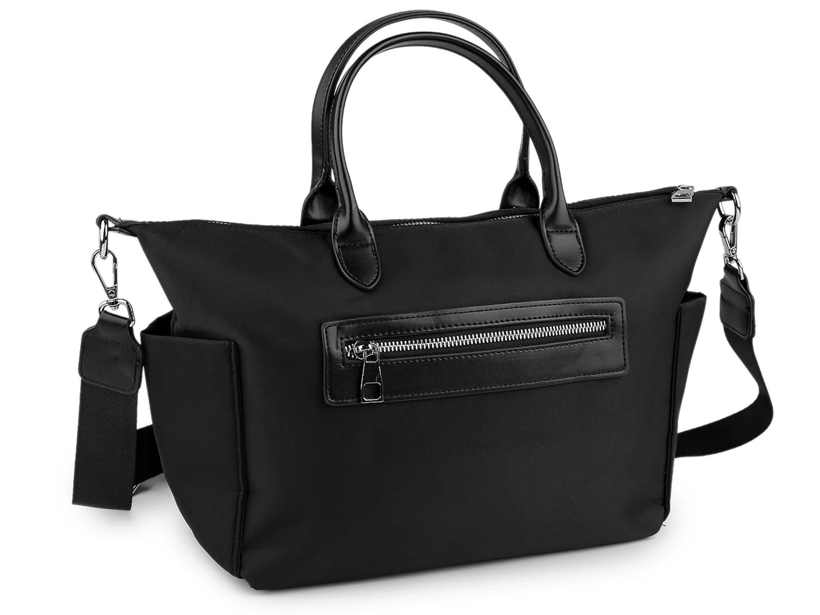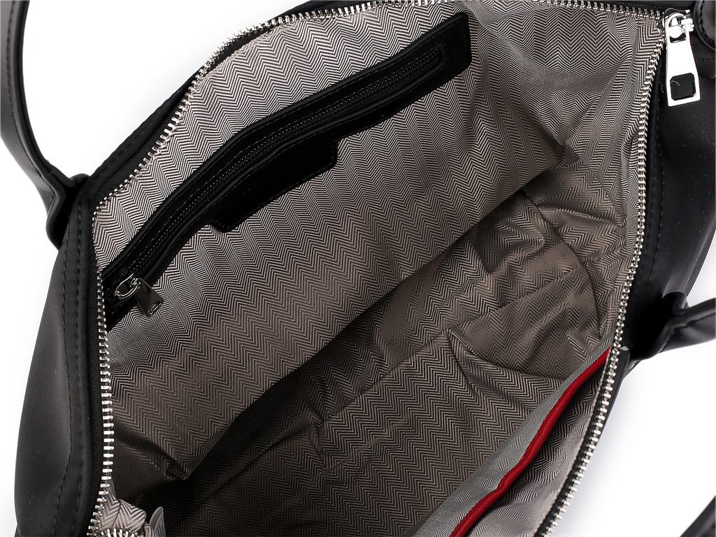 Kabelka se uzavírá na zip. Uvnitř najdete dvě postranní kapsy z nichž jedna je na zip. Na vnější straně kabelky je klasická kapsa na drobnosti, kapsa na zip a po stranách jsou přihrádky.