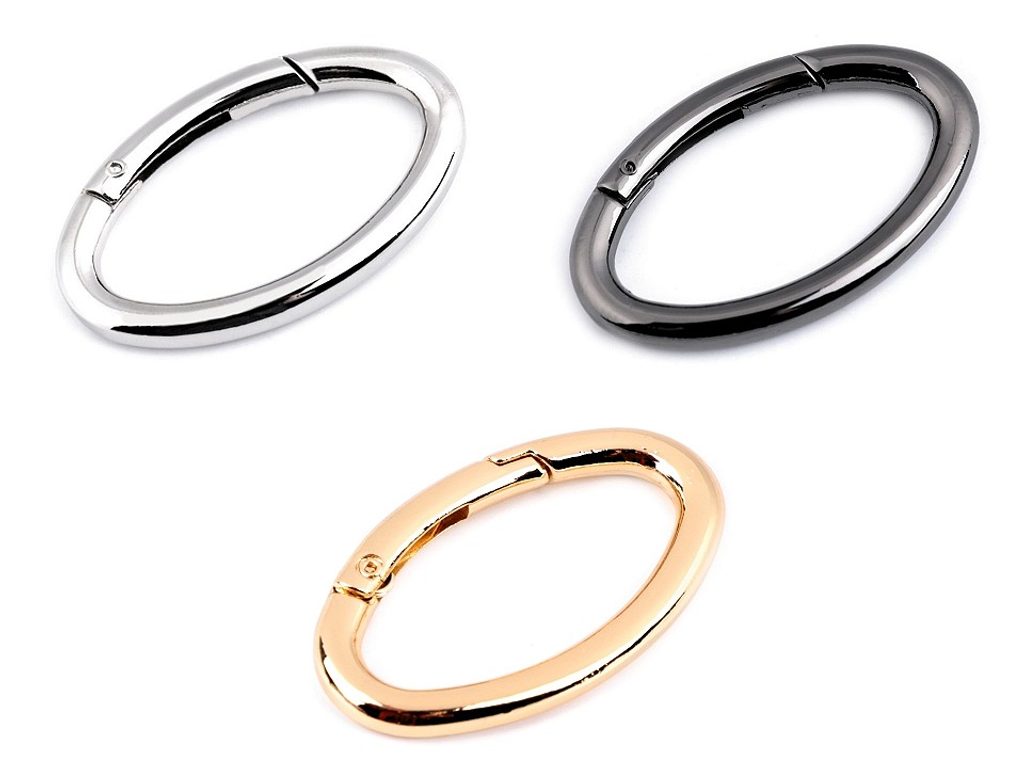 Jednoduchá, ale efektní karabina ve tvaru oválu vám poslouží na sepnutí klíčů i k upevnění přívěsků na kabelky či tašky.