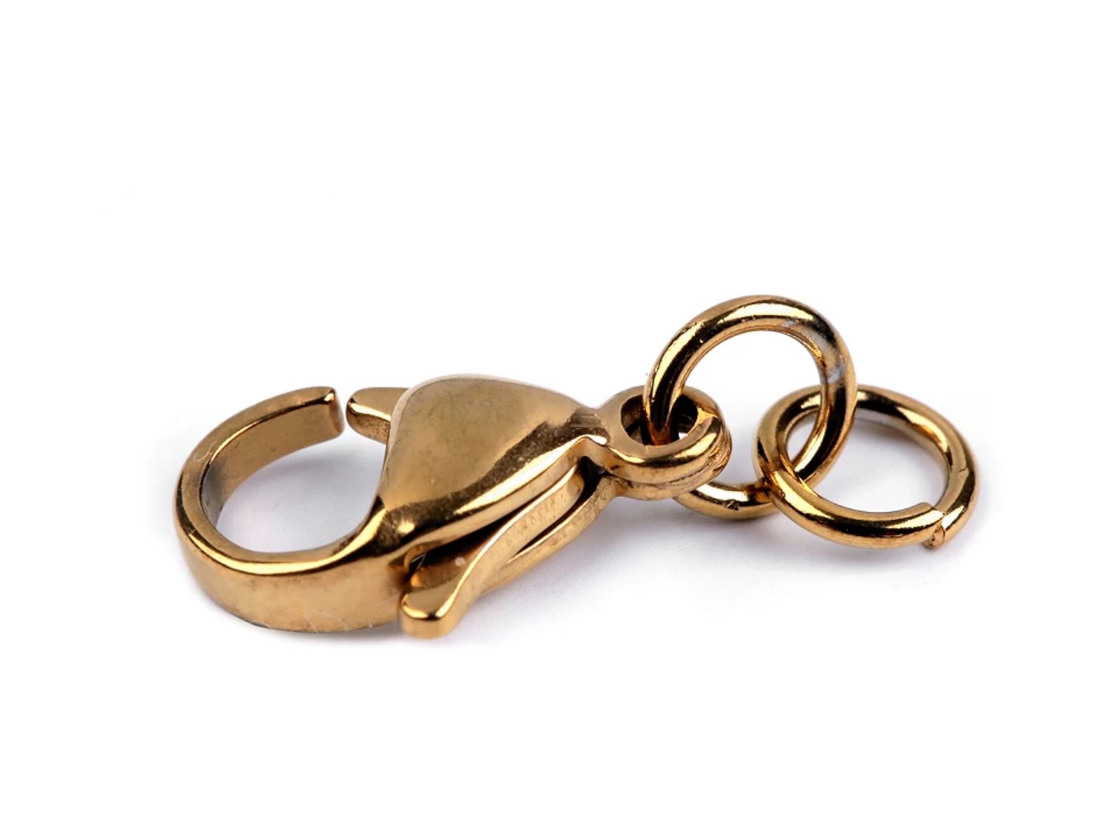 Bižuterní karabinka s rozevíracími kroužky je vyrobená z kvalitní nerezové oceli. Využijete ji jako zapínání u náhrdelníků nebo náramků. Rozevírací spojovací kroužky vám poslouží k připevnění karabinky ke koncům řetízků nebo jiným koncovkám.