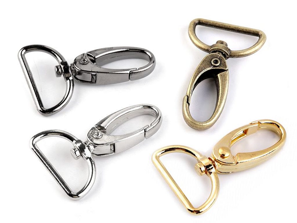 Kovovou otočnou karabinu využijete k připevnění popruhů ke kabelkám či taškám. Je vhodná také na výrobu klíčenek a vodítek pro vaše čtyřnohé miláčky. [Netradičně ji můžete použít i jako ozdobné zapínání na ramínka šatů.]