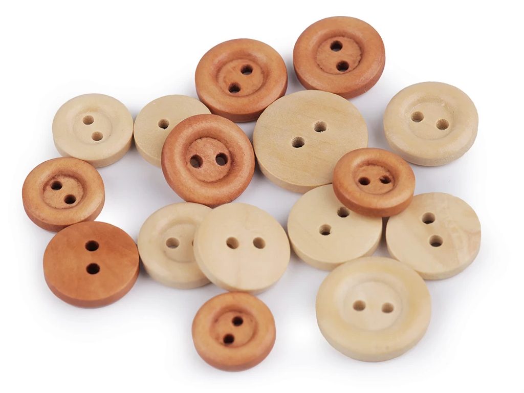 Dřevěný knoflík dvoudírkový velikost 20", 24", 28", 30", 32" 10 kusů naleznete v kategorii: Knoflíky