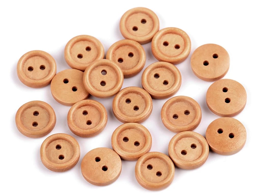 Dřevěný knoflík dvoudírkový velikost 20" - balení 20 kusů