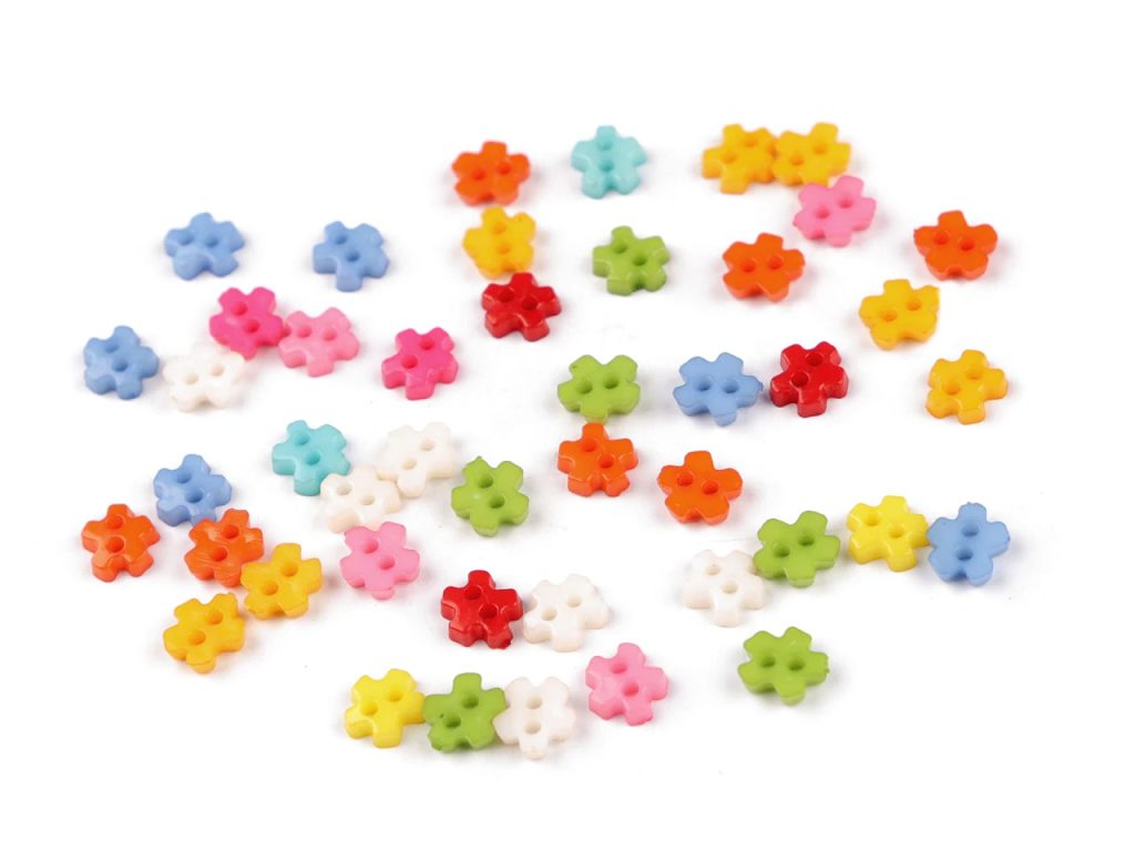 Mini knoflík pro panenky, postavičky Ø6 mm / srdce, hvězda, květ 100 kusů naleznete v kategorii: Knoflíky
