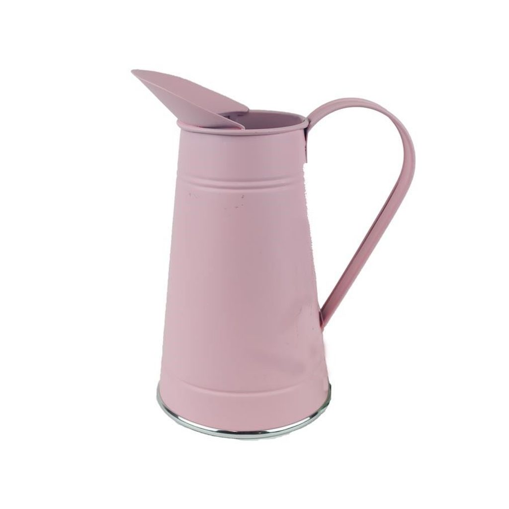 Konvička kovová. Konvička slouží k dekoraci, nedoporučujeme plnit vodou. Rozměry : šířka 16 cm, hloubka 8,5 cm, výška 20,5 cm. Barva : růžová. Materiál : kov.