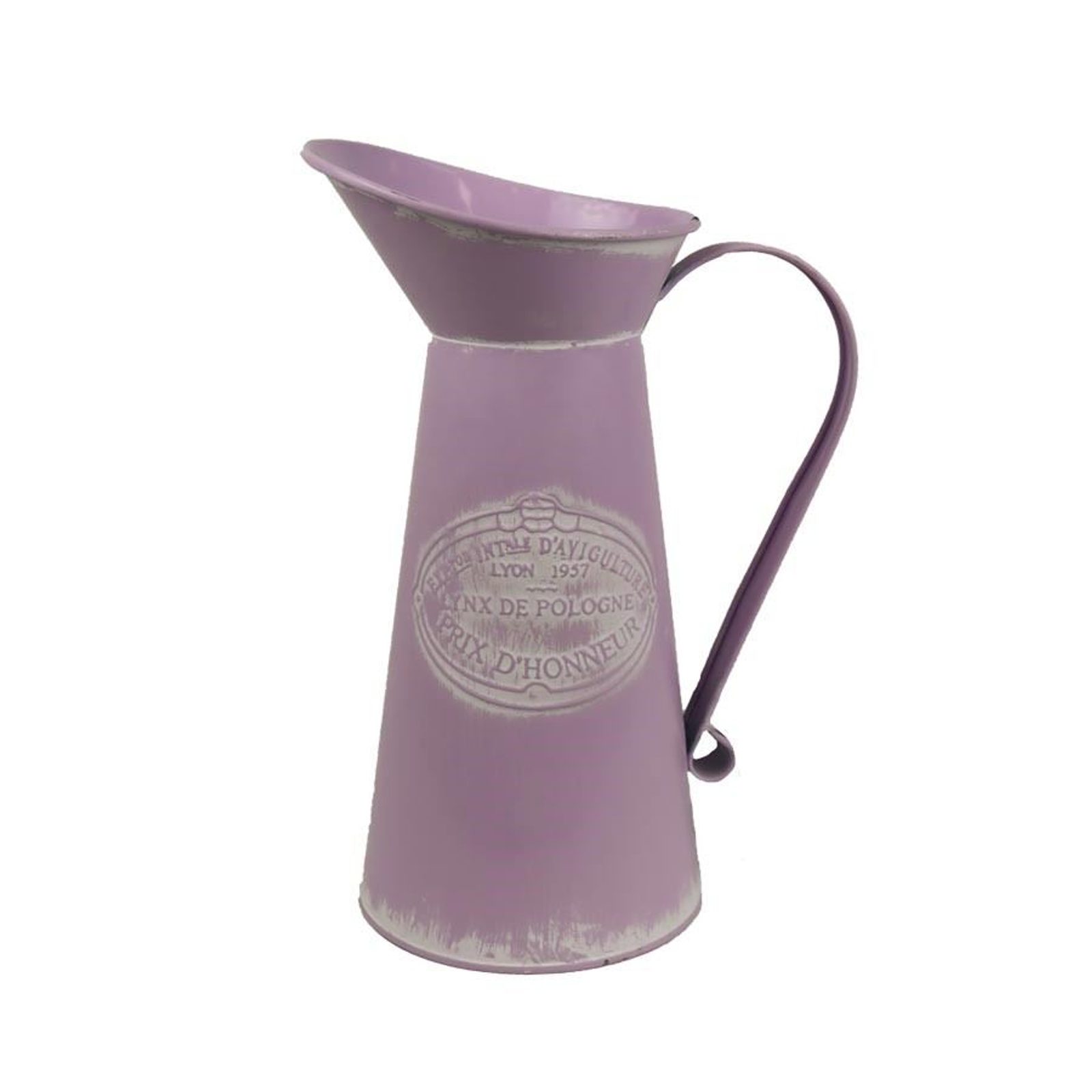 Konvička plechová. Konvička slouží k dekoraci, nedoporučujeme plnit vodou. Rozměry : 20 x 13 cm, výška 27 cm. Barva : fialová. Materiál : plech.