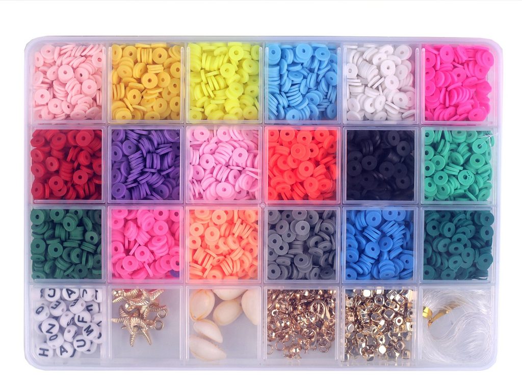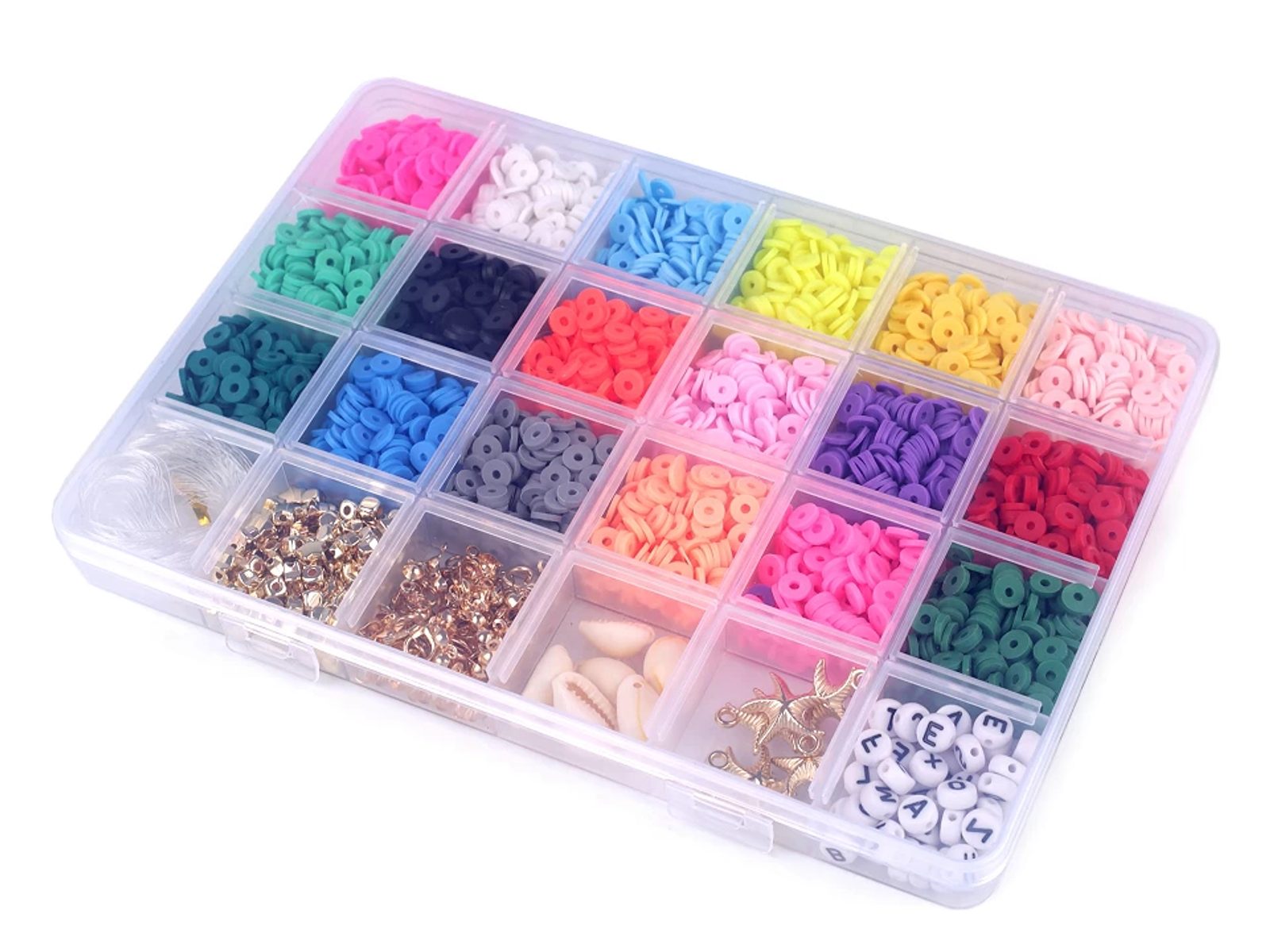Sada silikonových placiček a plastových korálků a přívěsků v boxu potěší malé i velké korálkářky. Jsou skvělé na výrobu náramků a náhrdelníků, protože box obsahuje i bižuterní komponenty a silikonovou gumičku na navlékání.