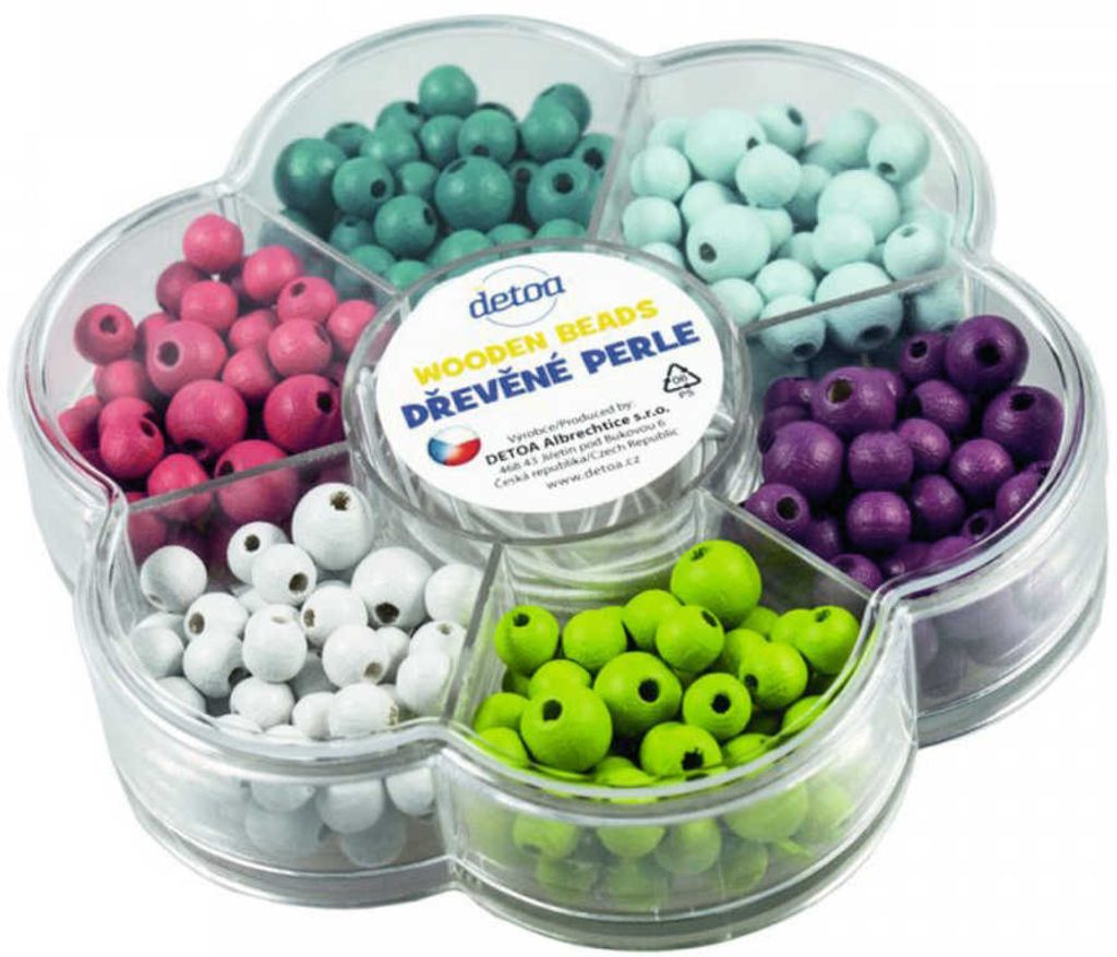 DETOA DŘEVO Perličky v kytičce II. set barevné korálky 180ks s provázky naleznete v kategorii: Korálky dřevěné