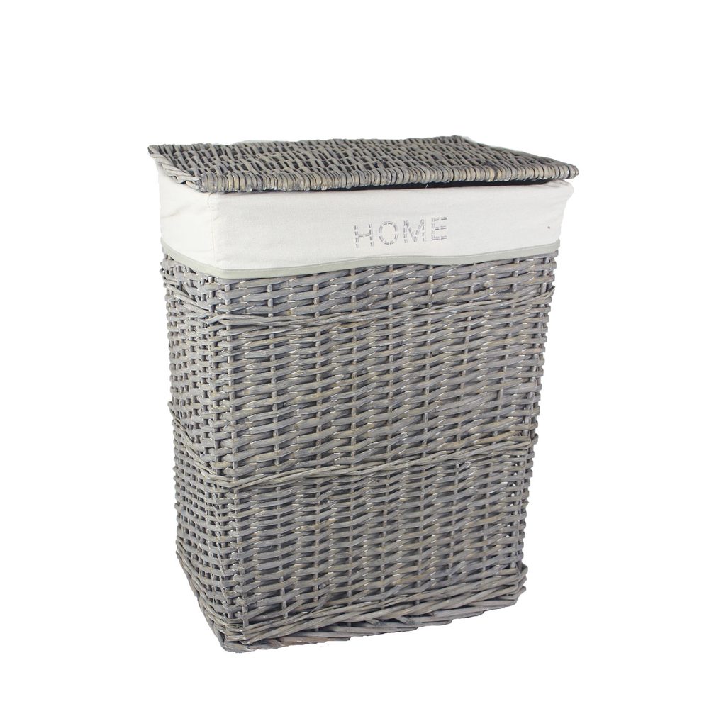 Velice pěkný koš na prádlo moderního designu. Rozměry : 45 x 35 cm, výška 57 cm. Barva : šedá. Materiál : proutí, látka.