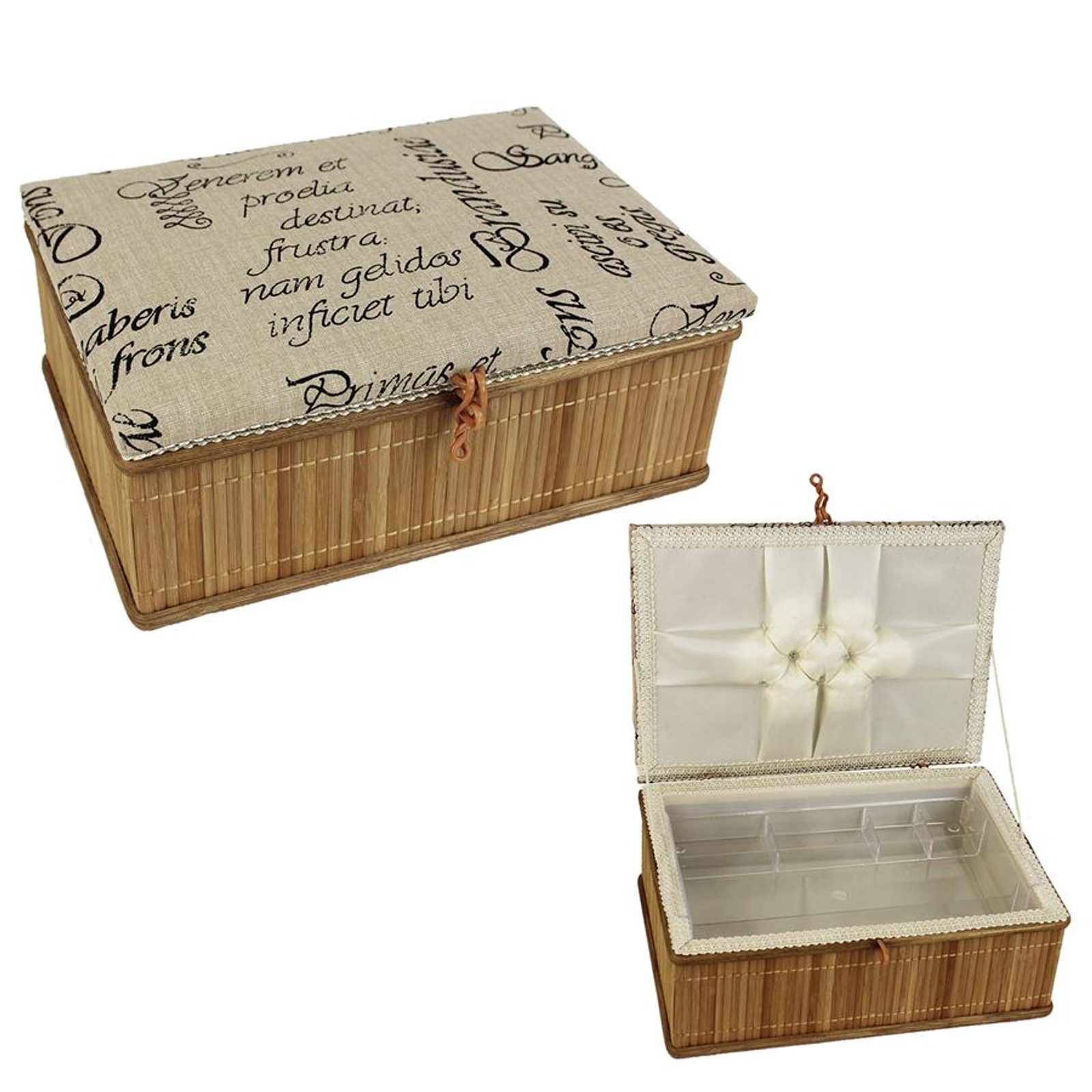 Kazeta je včetně plastové přihrádky. Rozměry : 27 x 19 cm, výška 12 cm. Materiál : štípaný bambus.