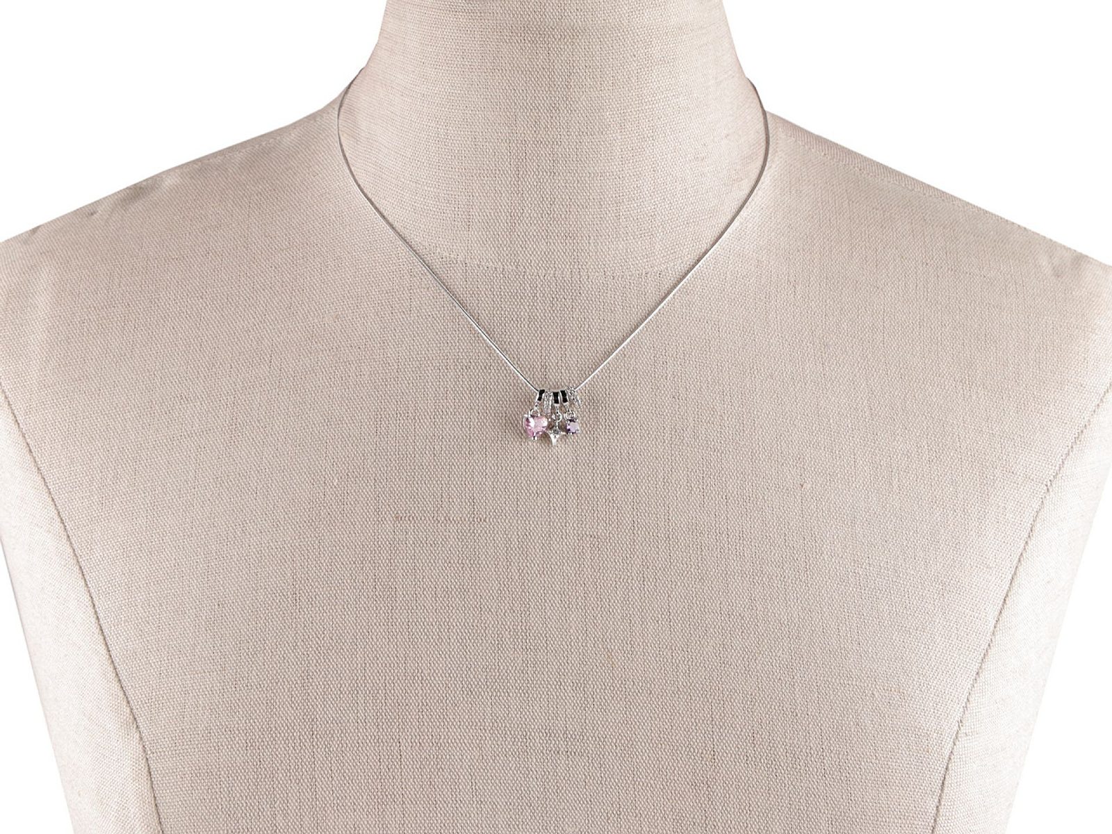 Náhrdelník s přívěsky s broušenými kamínky je vyrobený z kvalitní nerezové oceli. Potěší ženy, které mají rády jemné, ale přitom zajímavé šperky. Decentně dozdobí většinu outfitů. Přívěsky se krásně třpytí, volně se pohybují na hadím řetízku, z náhrdelníku nejdou sundat. Ač přívěsky vypadají, jako více kusů, ve skutečnosti jsou spojené do jednoho přívěsku.