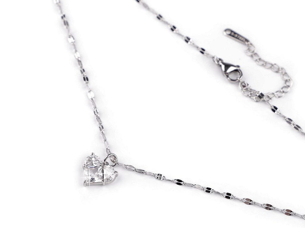Náhrdelník z nerezové oceli dvojitý srdce s broušenými kamínky