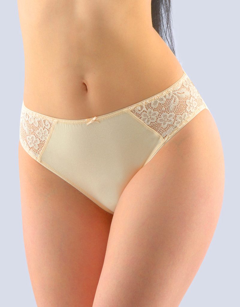 kalhotky klasické, širší bok, šité, s krajkou, jednobarevné značky GINA, kód 10221. Složení: 92% Bavlna 8% ElastanKalhotky klasického střihu, dámské šité prádlo. V pasovém kraji je našitá pruženka s ozdobným krajem. V nohavičkách je našitá pruženka s ozdobným krajem. Kalhotky jsou zdobené krajkovou vsadkou na bocích. Kalhotky jsou jednobarevné.Materiál je vyroben z bavlny, která je doplněna elastanem. Úplet je vhodný pro všechny, kteří hledají přírodní materiály. Elastan přidává materiálu pružnost a zlepšuje jeho tvarovou stálost. Prádlo z tohoto materiálu je vhodné pro každodenní nošení..