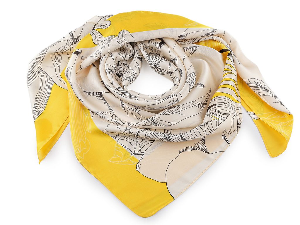 Saténový šátek květy 90x90 cm