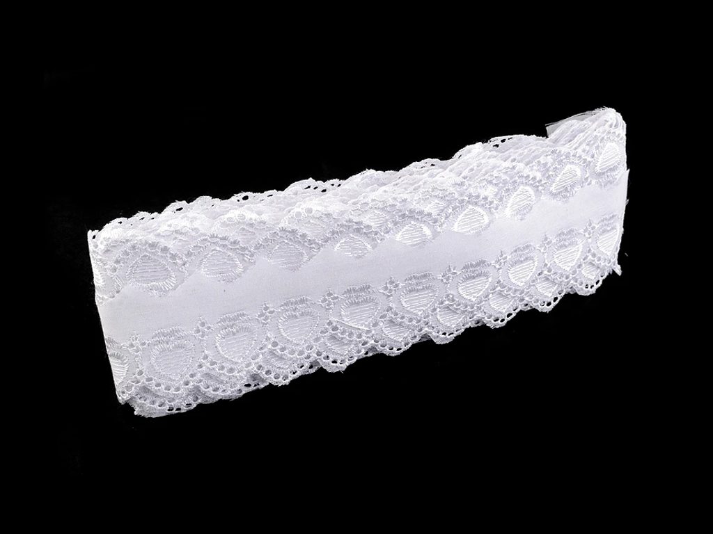 Krajka šifonová vyšívaná 70128 šíře 6cm bílá návin 9 metrů