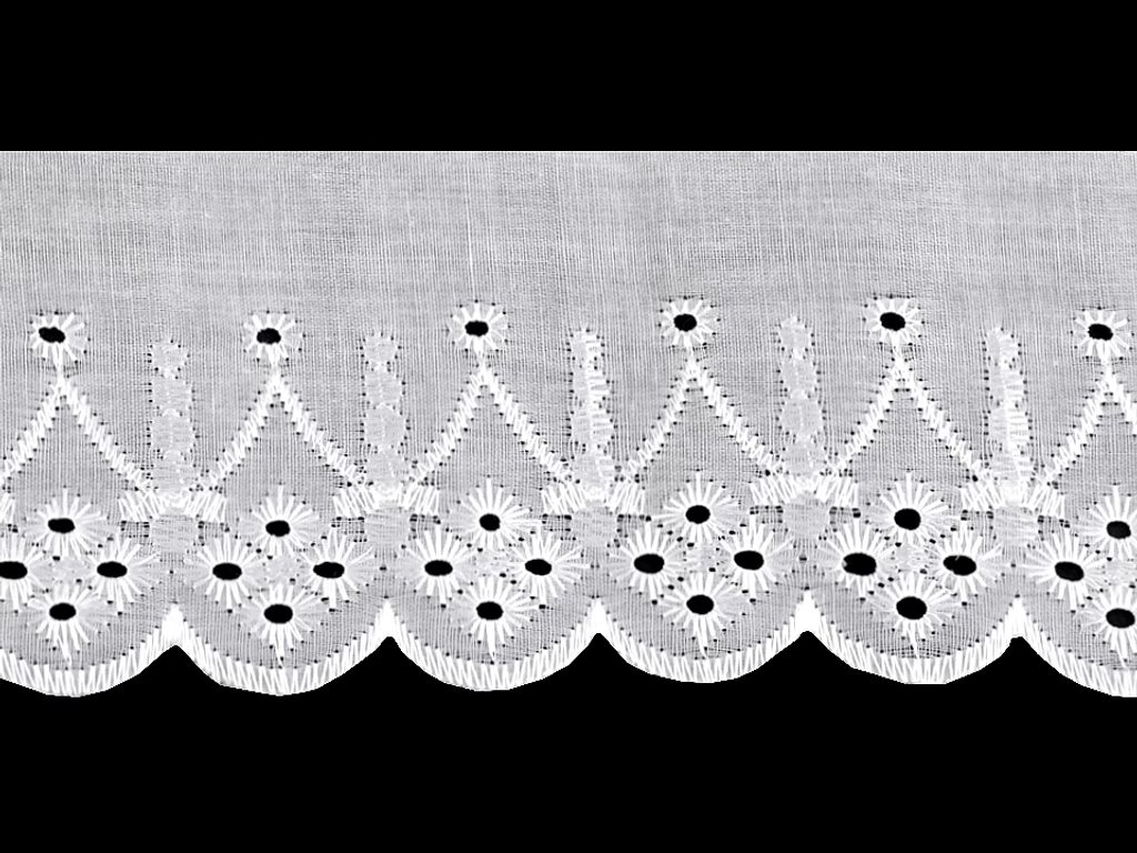 Krajka šifonová vyšívaná 70128 šíře 6cm bílá návin 9 metrů