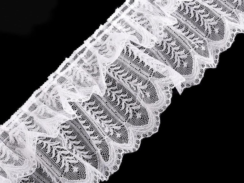 Použití: Řasenou krajku oceníte při zdobení oděvů. Můžete dát originální nádech svým halenkám, sukním nebo šatům. Je vhodná také jako dekorace bytových doplňků, například polštářů či závěsů.