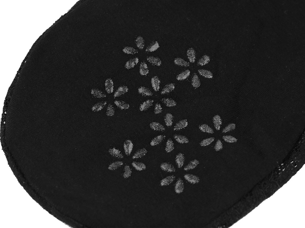Celý okraj ponožky je pružný a přizpůsobivý. Navíc díky silikonovému protiskluzovému proužku, který je schovaný pod celým okrajem ponožky skvěle sedí na noze, při chůzi nesklouzávají z paty ani z nártu. Na spodní straně mají protiskluzové květinky, díky kterým obuv pevně sedí na noze.