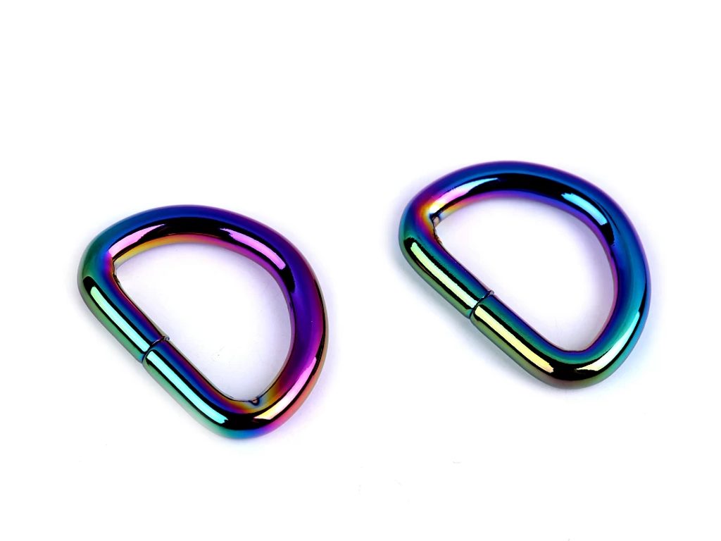 Kovový polokroužek má efektní holografický povrch, který hází zajímavé barevné odstíny. Využijete ho k uchycení ucha kabelky nebo tašky. Je vhodný také na výrobu obojků pro domácí mazlíčky.