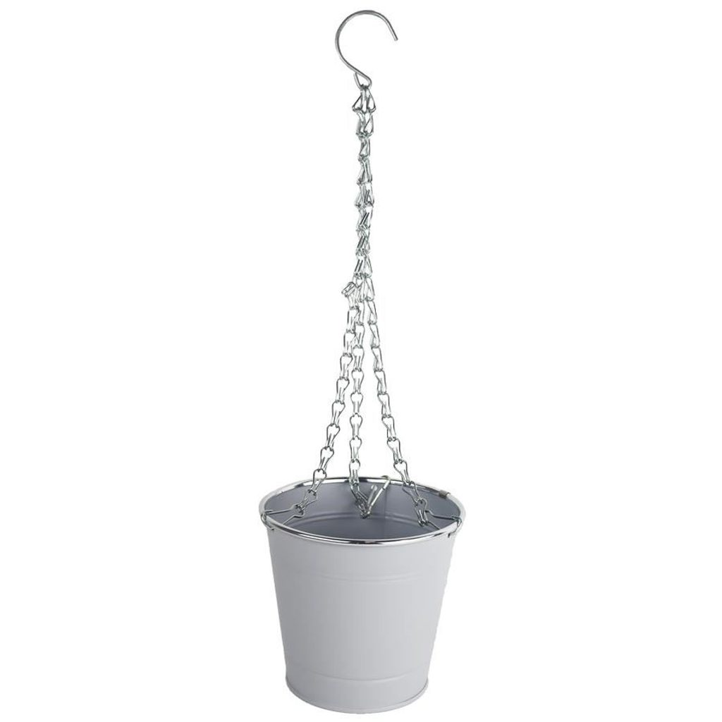 Květináč plechový k zavěšení. Rozměry : průměr 16 cm, výška 14,6 cm. Barva : bílá. Materiál : kov.