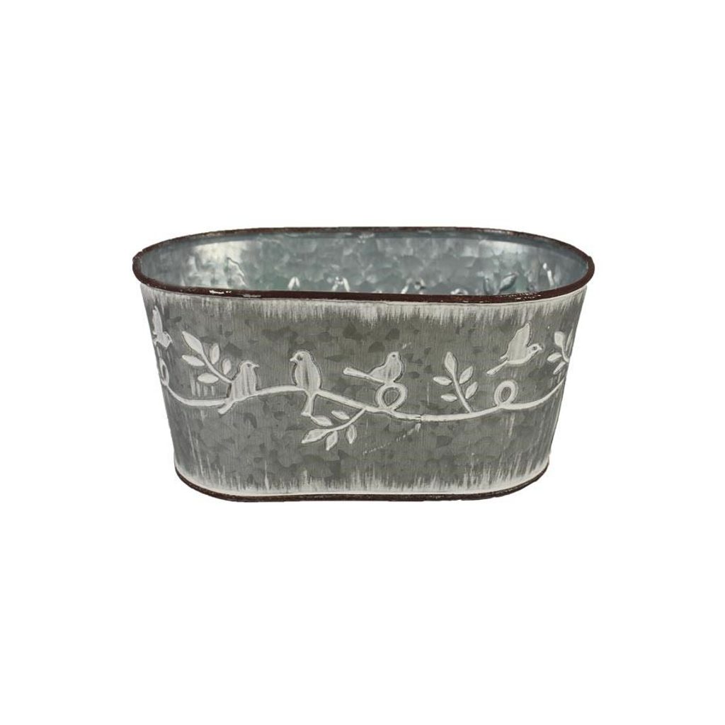 Květináč plechový. Rozměry : 19,5 x 11,5 cm, výška 9,5 cm. Barva : šedá. Materiál : plech.