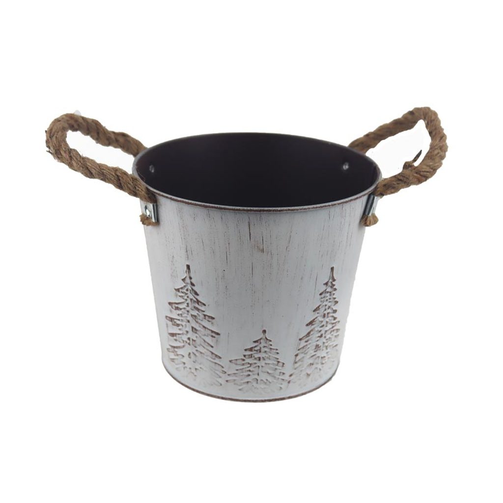 Květináč plechový. Rozměry : průměr 15 cm, výška 13 cm. Barva : kombinace bílá s Materiál : kov.