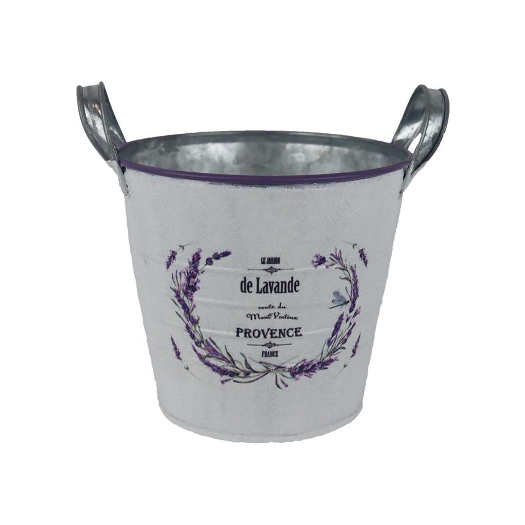 Květináč plechový motiv levandule K4595/2 - Round:14.5x13-16 Bottom:10