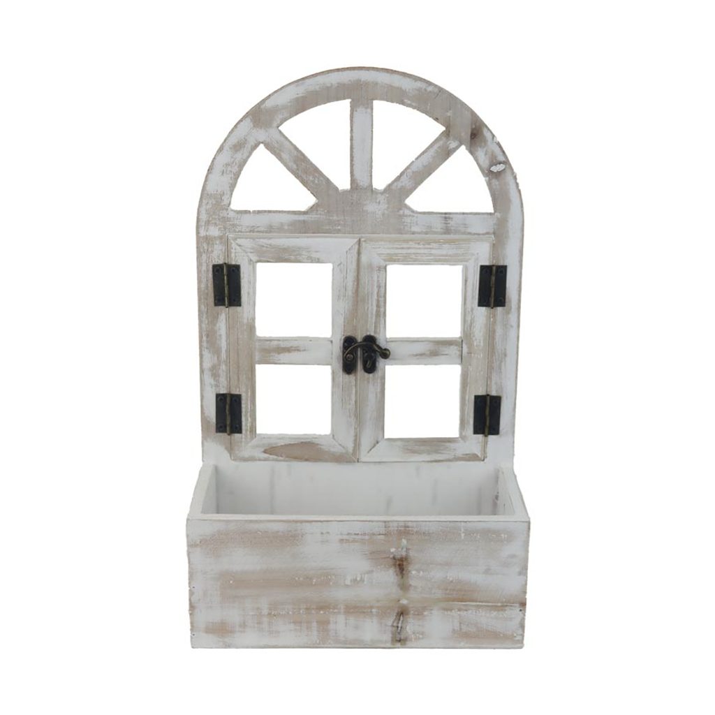 Dřevěný obal na květiny s plastem.