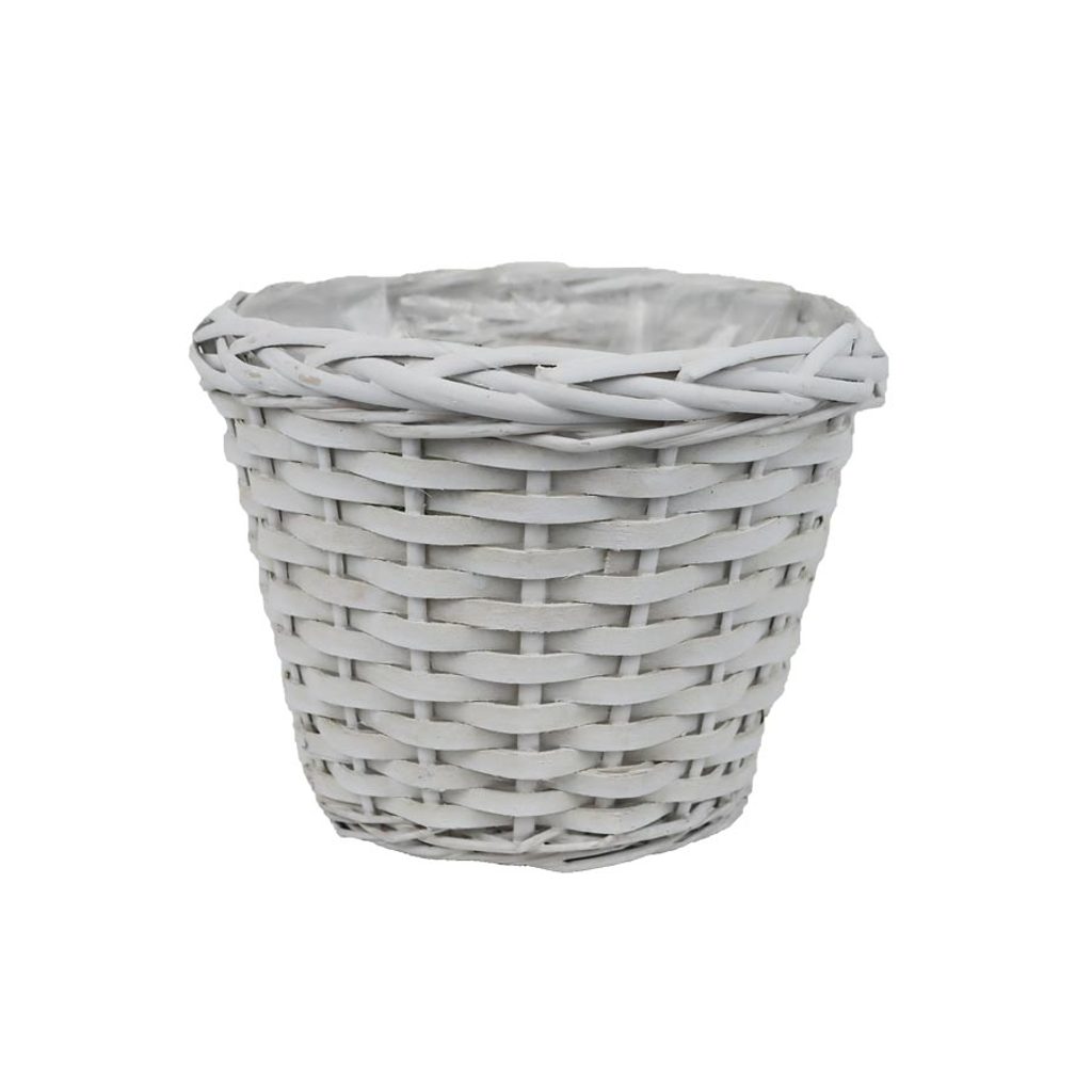 Proutěný obal na květiny s plastem.