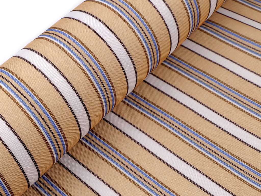 Kočárkovina s pruhy je z rubové strany opatřená nánosem z PVC s vodoodpudivou úpravou, díky tomu je nepromokavá. Je pevná, oděruvzdorná a hrubší. Využijete ji na šití tašek, batohů, potahů, kočárků, pelíšků pro zvířátka, sedacích vaků, lehátek, slunečníků apod.