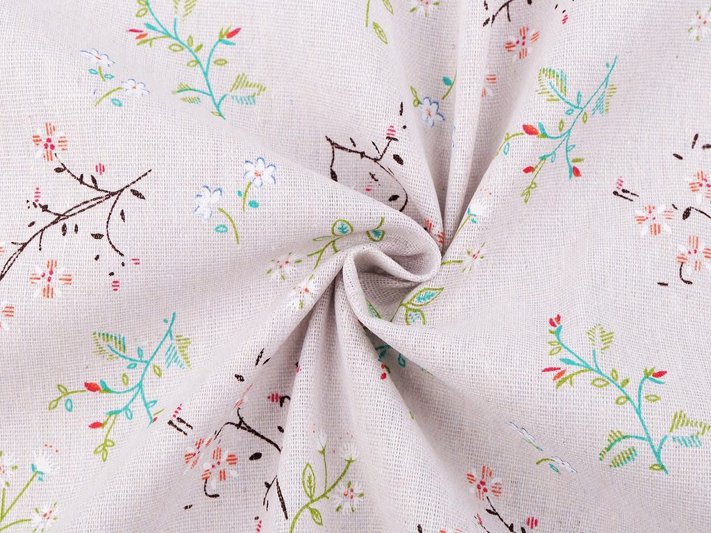 Bavlněná metráž / imitace lnu hrubší květy / větvičky METRÁŽ
