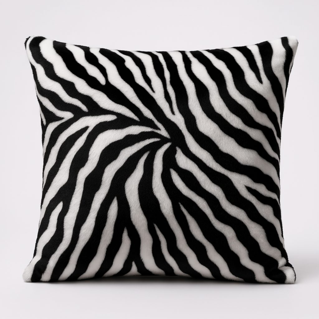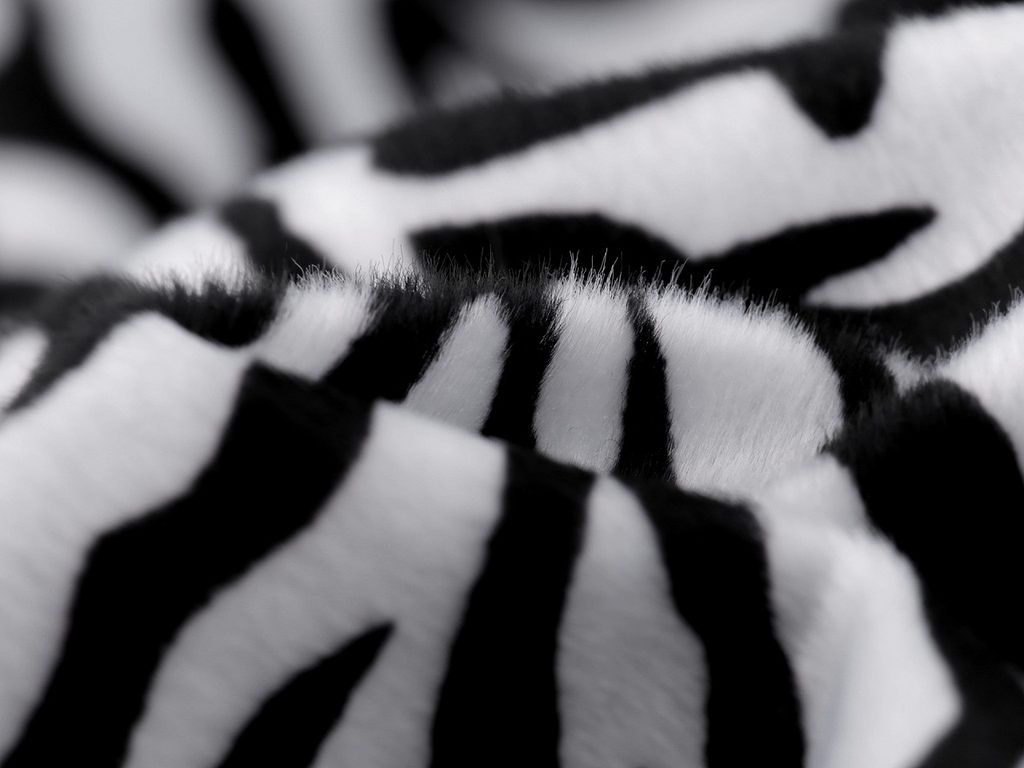 Umělá plyšová kožešina imituje zebří srst. Je měkká a příjemná na dotek, lehce pruží do šířky a má krátký chlup. Využijete ji na šití bytových doplňků (polštářů, přehozů apod.) i kabátků či vest. Hodí se také na karnevalové kostýmy.