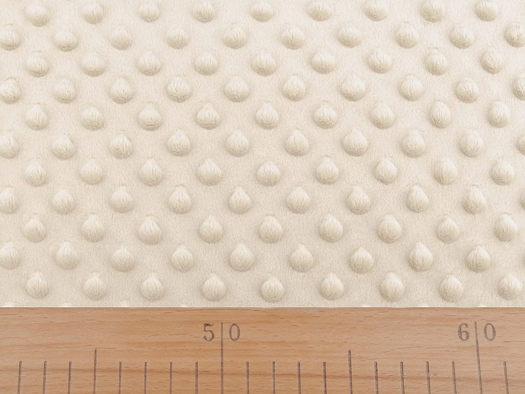 Minky jsou velmi příjemné, měkké a hebké na dotek. Na lícové straně jsou vytlačené 3D puntíky. Látka lehce pruží.