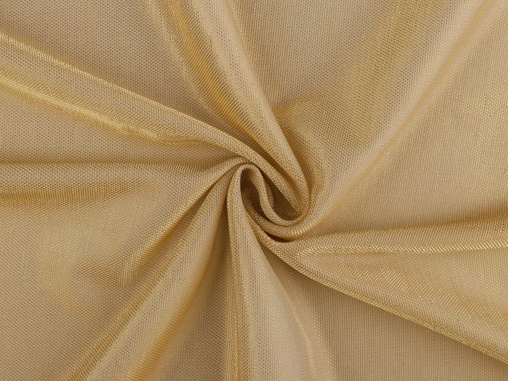 Třpytivý úplet je splývavý, lehký, z rubové strany hladký a pruží víc do šířky než do délky. Využijete ho na šití karnevalových a tanečních kostýmů, dárkových pytlíků i k aranžování (Vánoce, plesy, oslavy apod).