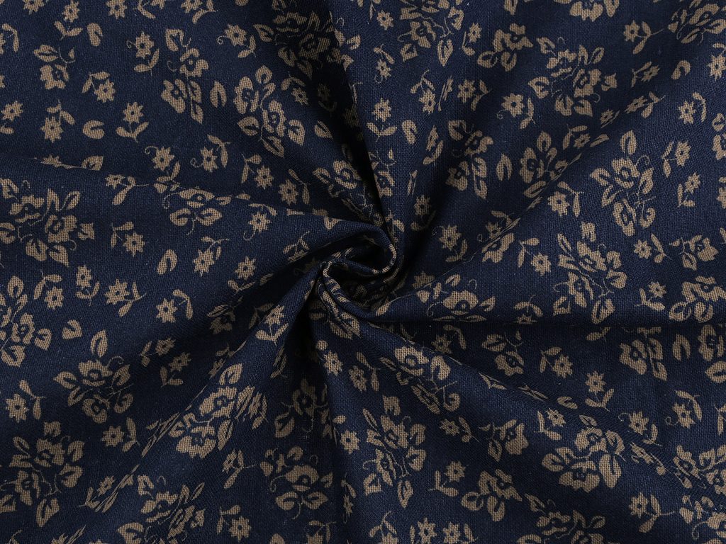Bavlněná látka / plátno modrotisk rostliny METRÁŽ