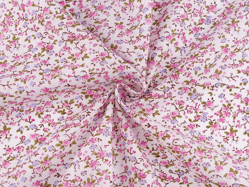 Bavlněnou látku s potiskem drobných květů využijete na šití polštářů, povlečení, závěsů, ubrusů, tašek, pytlíků, zástěr apod. Je měkká a příjemná na dotek.