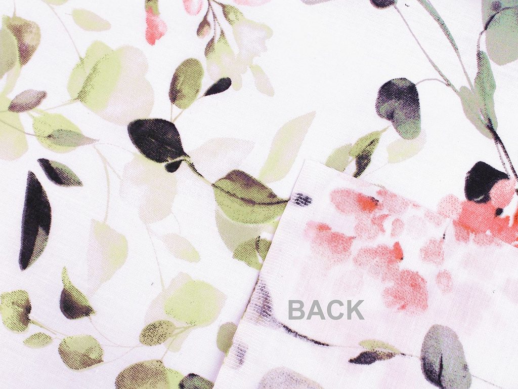 Bavlněnou látku s potiskem rostlin a něžných květů využijete na šití polštářů, povlečení, závěsů, ubrusů, tašek, pytlíků apod.
