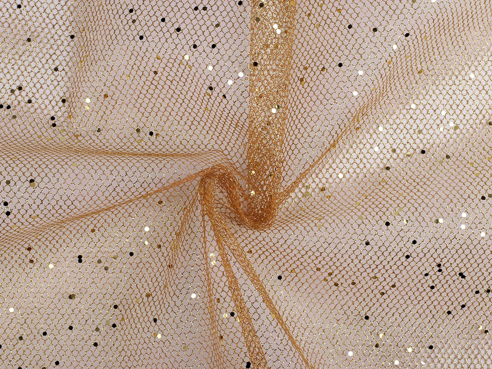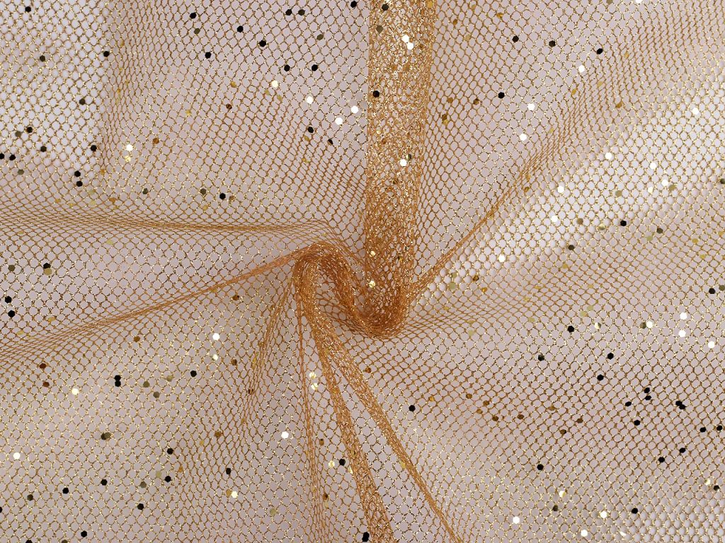 Tyl s jemnými glitry má velká oka (Ø3,5 - 4 mm), je tužší a drží tvar. Využijete ho na karnevalové kostýmy a vánoční aranžmá. Pruží lehce po šíři.