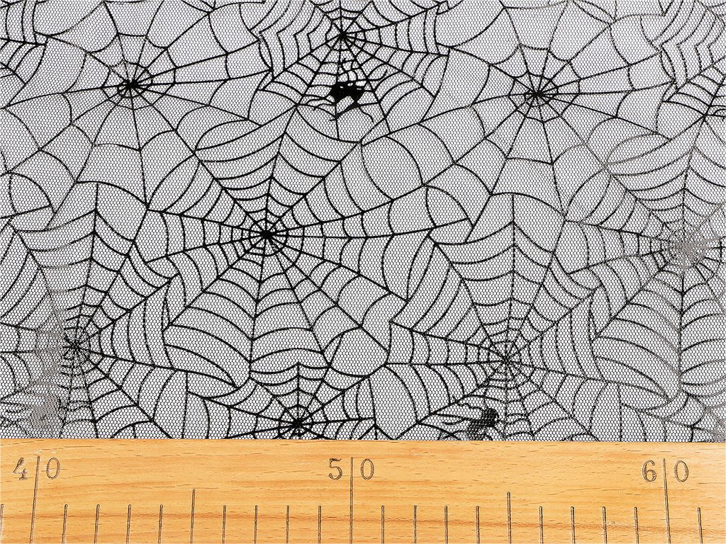 Jemný tyl s pavučinovým vzorem využijete na výrobu kostýmů, sukní, halloweenských dekorací apod. Je lehký, průsvitný a splývavý. Potisk je lesklý.