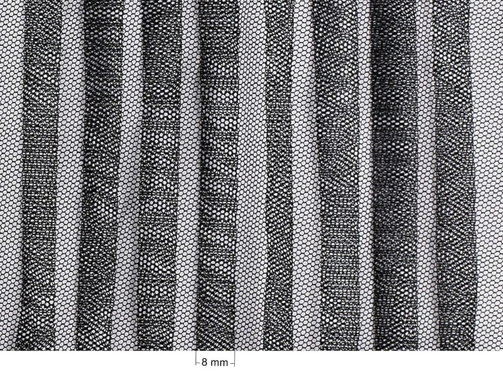 Plisovaný tyl působí vkusně a hezky splývá. Využijete ho na šití sukní, společenských i plesových šatů, halenek apod. Plisovaný design dodává výrobkům objem a šarm.