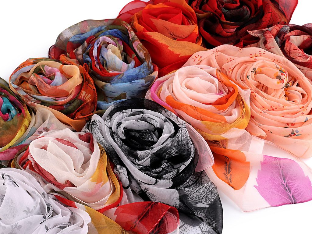 Šátek s barevným potiskem je lehounký, vzdušný, příjemný na dotek. Doladí vám outfit, ať už si vezmete sako, halenku, svetřík či šaty.