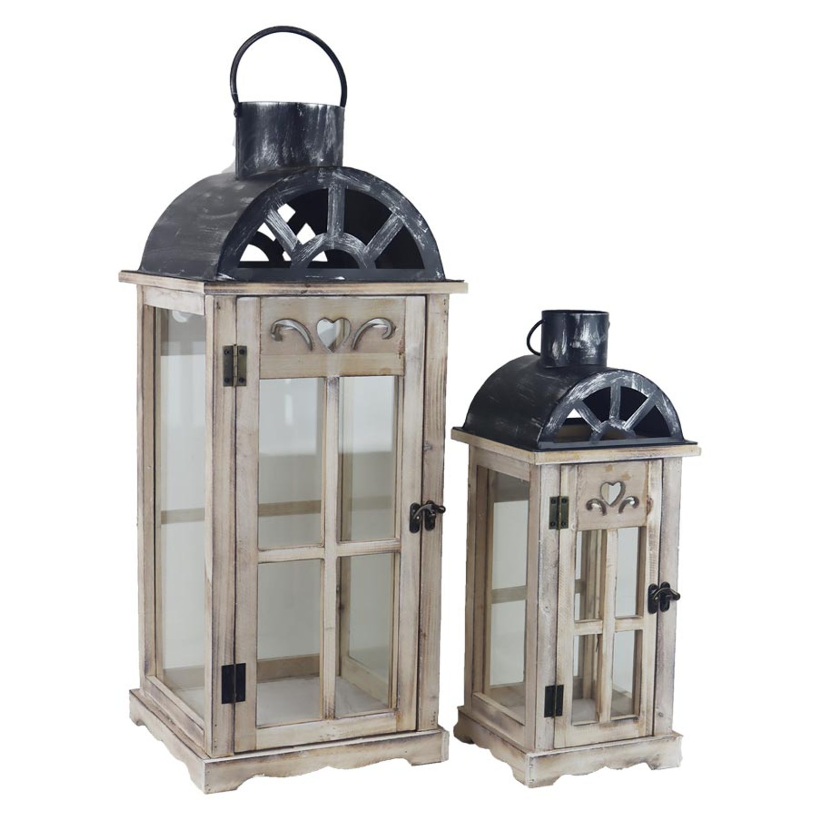 Sada 2 ks dřevěná lucerna, S/2 D7093 - výška 41,5 cm, 59,5 cm