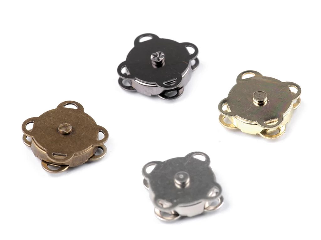 Magnetické zapínání se skládá ze dvou částí, které se protilehle přišívají na materiál a přitisknou se k sobě. Využijete ho jako zapínání na psaníčka, kabelky nebo tašky.
