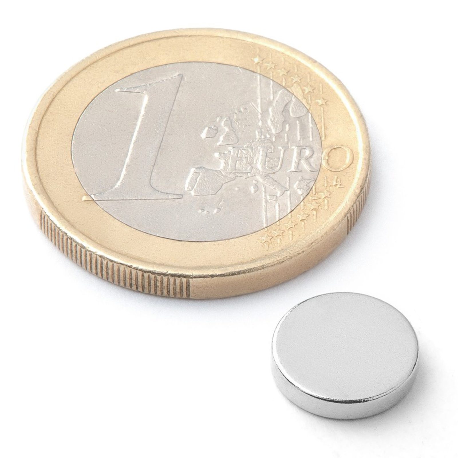 Kotoučový magnet Ø 10 mm, výška 2 mm, neodymový, N42, poniklovaný, síla: cca 1,3 kg