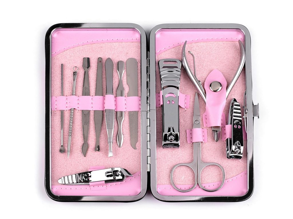 Manikúra obsahuje: nehtové nůžky, pilník, pinzetu, 5 kusů manikúrových nástrojů a 4 kusy nehtových kleští.