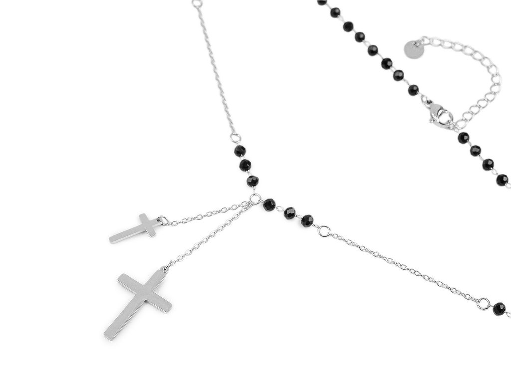 Náhrdelník z nerezové oceli křížek s broušenými korálky